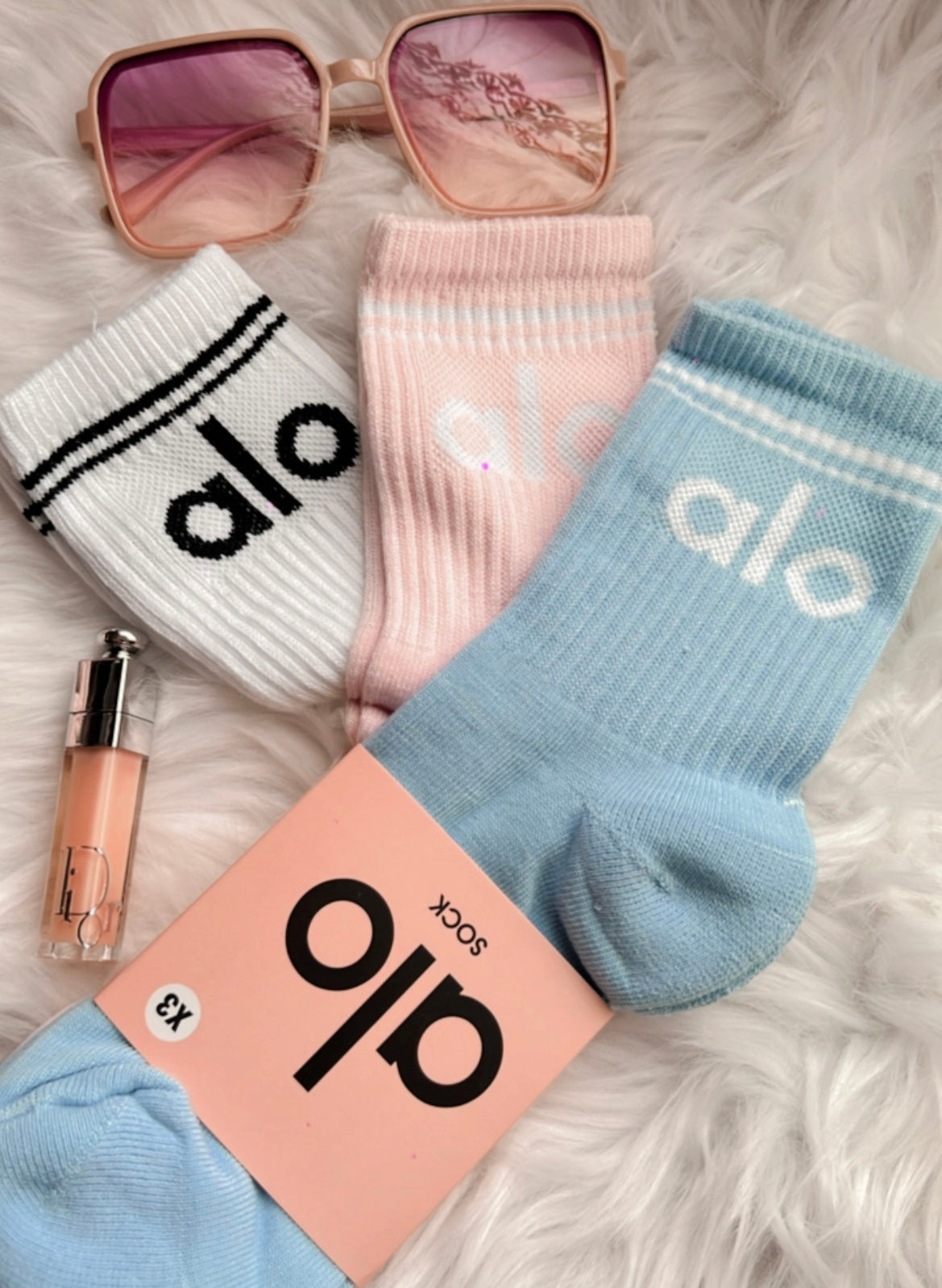 3 pares de calcetines @lo blanco/rosa/azul